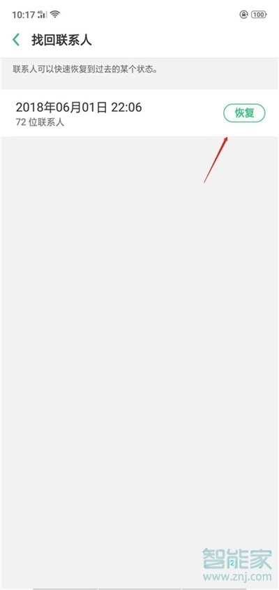3、打开【找回联系人】,选择时间就能够恢复当时的通讯录信息,这样之前删除的联系人也回到手机上了。
