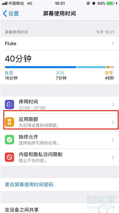 3、点击【应用限额】,如果设置了屏幕使用时间密码就需要输入密码才能进入。