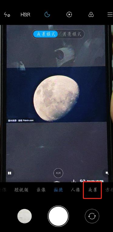 2、在相机界面找到【夜景】模式,点击切换到夜景即可开启超级夜景模式。