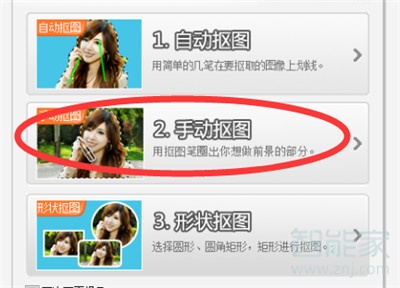 3、然后在弹出的选框中选择“手动抠图”选项。