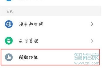 2、进入设置界面后,找到【辅助功能】点击进入。