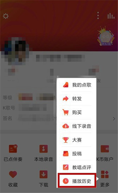 3、接着即可看到全民k歌的播放记录功能,点击打开播放记录;