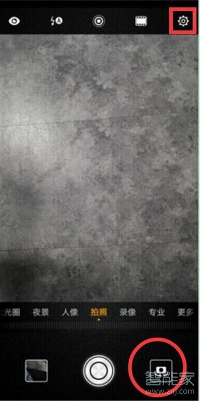 2、点击右下角按钮切换至后置摄像头,再点击点击右上角的“设置”图标,
