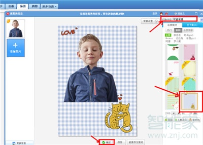 4、抠图后,点击完成抠图,图像就抠出来了,然后点击右上角有个背景选择,可以选择所需要的背景,然后根据需要调整图像大小,可以拉大或拉小,调好后点确定。
