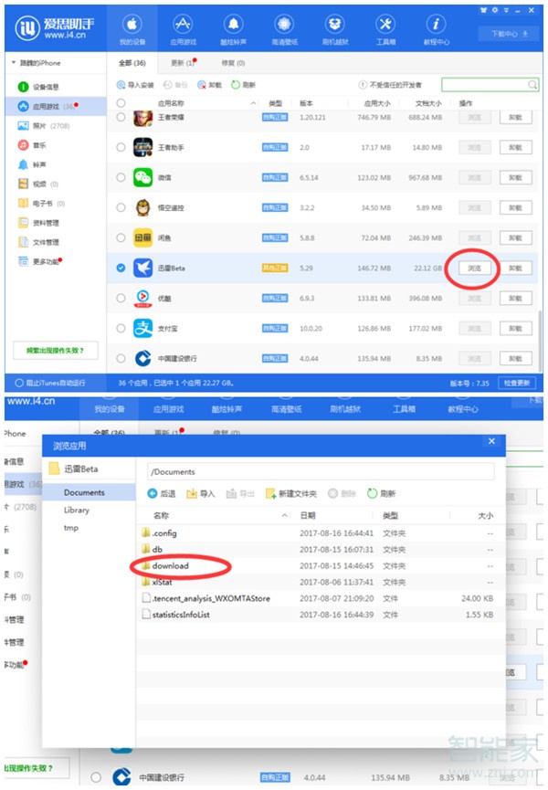 2、在左边“设备”中找到你的iPhone,然后右边点击应用程序。