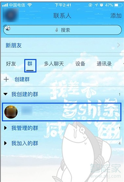 2、我们选择联系人,接着随意选择一个群打开