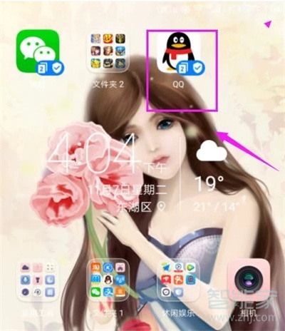 1、首先进入手机桌面,打开我们的QQ