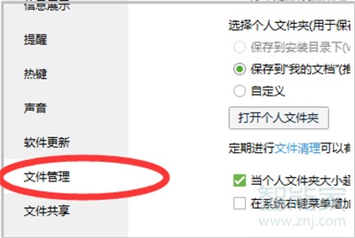 3、在“系统设置”对话框左侧的菜单栏中选择“文件管理”选项。
