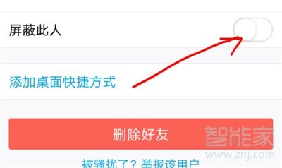 3、打开之后,下方有出现屏蔽此人的选项,点击即可完成屏蔽。