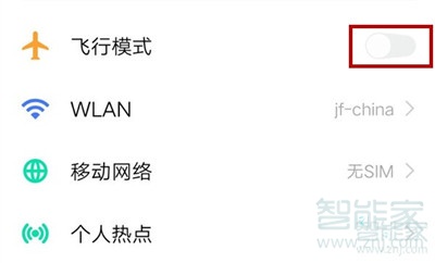 2、将飞行模式开关按钮拨动到右端即可开启飞行模式。