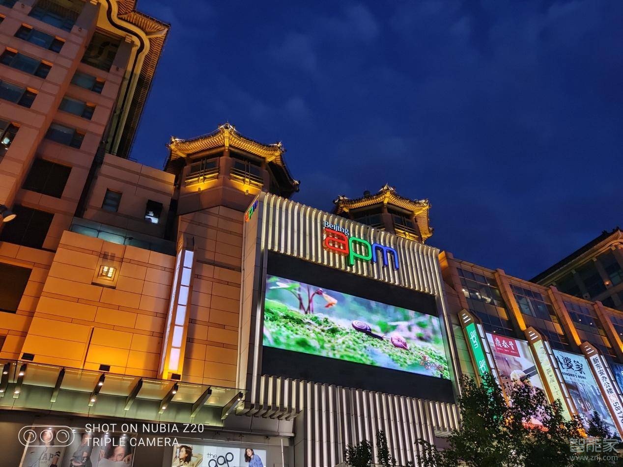 针对常规手机摄影上最难处理的夜景拍摄上。努比亚作为最早提出「可以拍星星」概念的手机品牌。自然有着夯实的夜景拍摄技术积累,笔者在人来人往、夜景光线复杂的王府井大街上走了一圈,为大家带来努比亚z20的夜景样张。