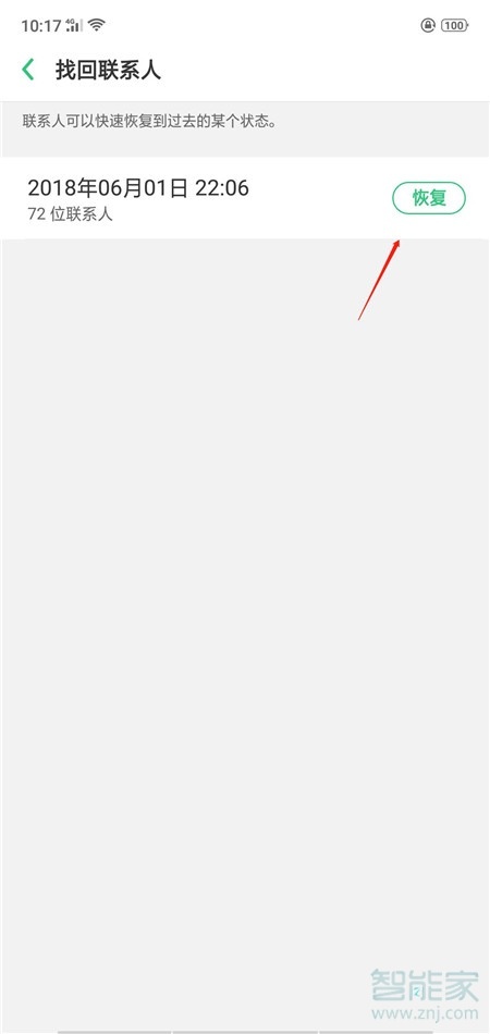 3、打开【找回联系人】,选择时间就能够恢复当时的通讯录信息,这样之前删除的联系人也回到手机上了。