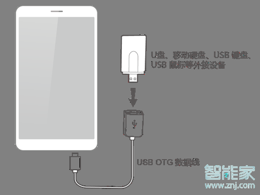 3、 传输文件:通过OTG线将手机连接到USB存储设备,然后进入“文件管理”的“本地”标签页,选择“USB”,就可以在手机和USB存储设备间传输文件。