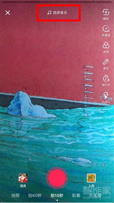 2.点击“选择音乐”,选择一首歌曲后使用。