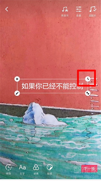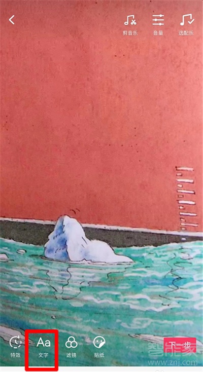 7.跟着换第二句,点击文字,然后点击右上角图标。