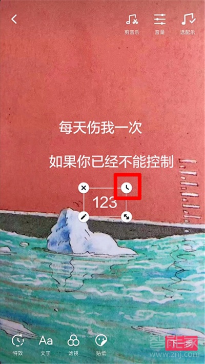 9.重复以上步骤,直到文字全部卡好,文字可以拖到屏幕的任意位置,好了后点击“下一步”并发布即可。
