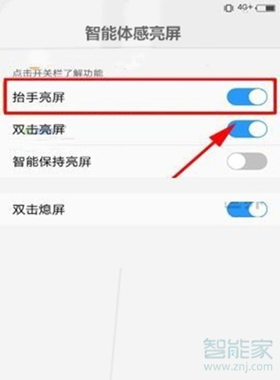 4、点击“抬手亮屏”右边的开关,使它开启即可。