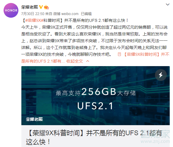 今年的手机市场竞争非常激烈,为了赢得消费者的喜欢,各手机厂商都在自己的产品上堆叠了非常多的先进技术,最近发布的几款手机中几乎都配备了UFS 2.1闪存,那荣耀9x采用的是什么闪存技术呢?