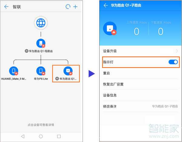 在智联拓扑结构中,点击子路由,选择开启子路由指示灯。