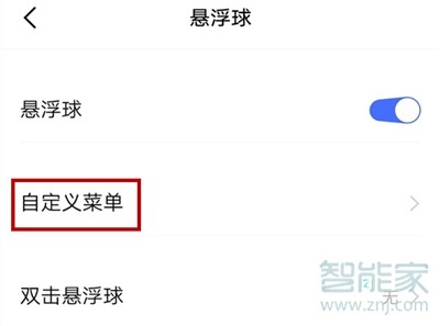 2、点击“自定义菜单”,进入悬浮球呼出菜单界面。