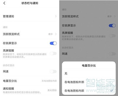 3、点击“电量百分比”,然后选择是否显示电量百分比以及显示方式。