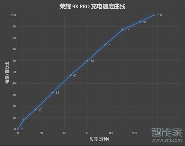 有媒体对荣耀9xpro的充电速度进行了实测,实测结果表明,在大电池小功率的情况下,荣耀9xpro最终从0%冲至100%用时117分钟。