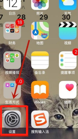 1、首先解锁苹果手机,打开手机主页面,找到”设置”选项,点击进入。