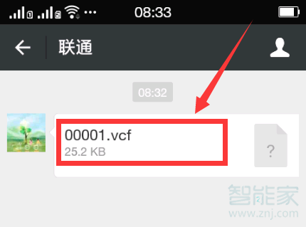 2、进入微信对话页面,我这里第一个联系人发来了一份文件。文档名称:00001.vcf。