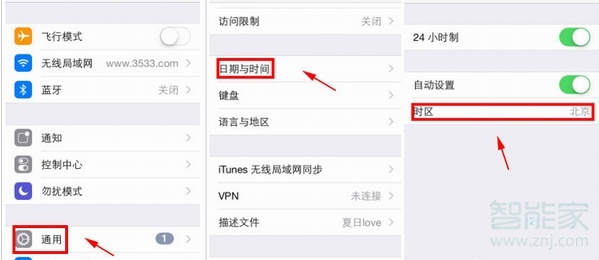 1.打开手机桌面进入【设置】,然后打开【通用】,进入【日期与时间】,点击【时区】设置成【北京】,