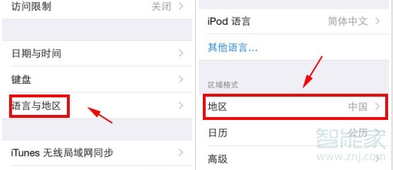 2.然后重新进入【设置】,打开【通用】,点击【地区】设置成【中国】。