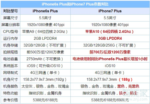 ️总结:通过对比来看,7plus相比6splus主要是性能与拍照能力有较大幅度升级,另外在机身颜色和屏幕触控方面有所创新,其他方面则相差不大。