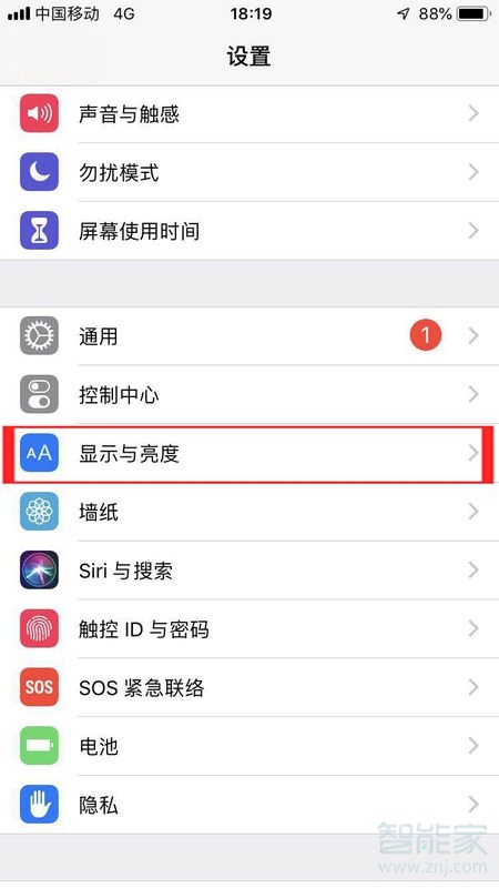 2、打开“设置”后找到“显示与亮度”一栏点击进入。