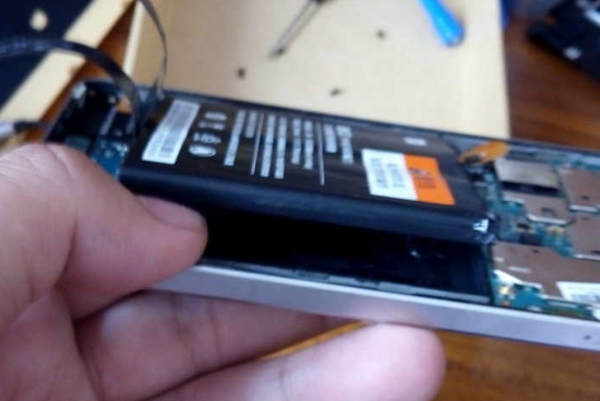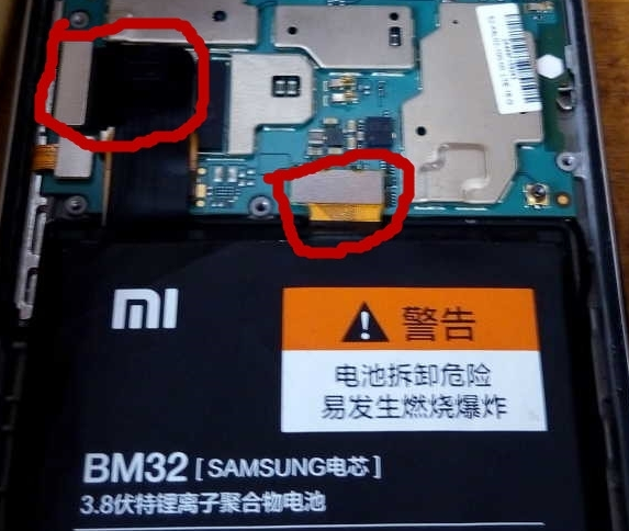 2.打开中壳后,注意打开中壳后要先拆了这2个排线拿了,拿下来后就可看到电池排线了,电池排线都是用同样的方法拿下来,然后撕开贴纸把里面的充电排线,显示屏排线拆开再取电池