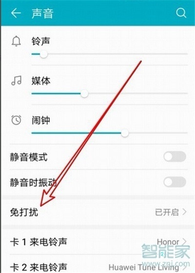 3、在打开的声音设置页面中,找到并点击“免打扰”的菜单项。
