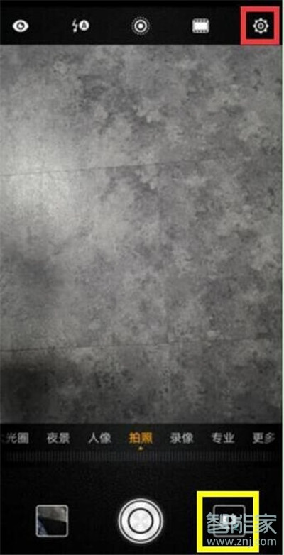2、切换后置摄像头,点击右上角的设置图标,或者左滑进入设置界面。