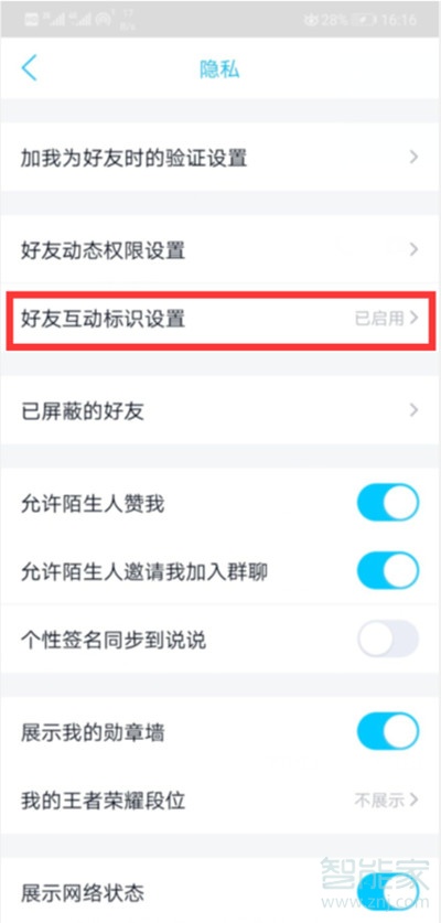 4、然后在此页面内点击“好友互动标识”功能选项。