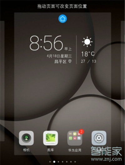 另外,还可以通过长按图标完成图标的放大和缩小,移动图标的位置等,双指捏合屏幕还可以更换壁纸、添加小部件、更改桌面布局等。