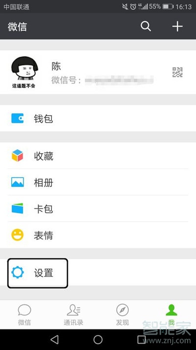 1、在微信中找到【我】中的【设置】选项