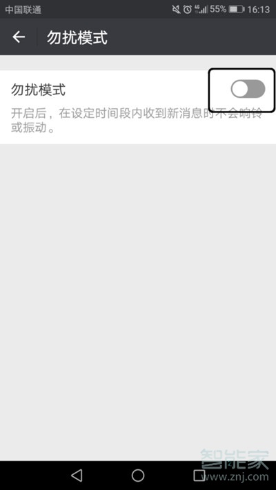 3、打开【勿扰模式】,将灰色图标滑至右边变成蓝色,即打开了【勿扰模式】