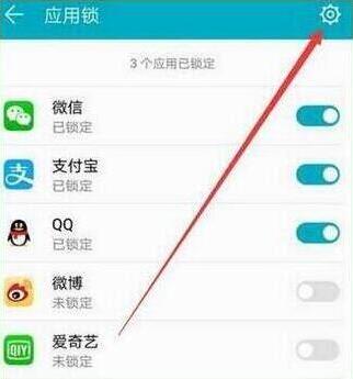 4、进入如下应用锁的界面后,我们点击打开右上角的【设置】图标,