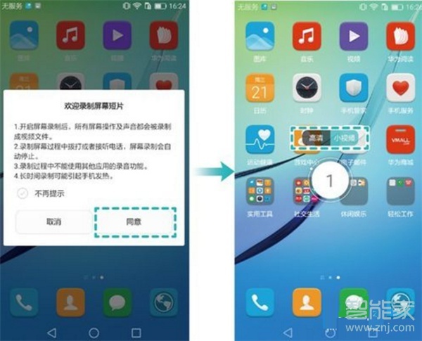 使用双指关节稍微用力地双击屏幕,再次双指关节双击则停止录屏。录制前手机会提示选择高清或小视频模式,给你更多选择,方便节省流量内存。