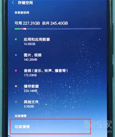 2、进入设置选项之后,找到【储存空间】选项,点击打开。