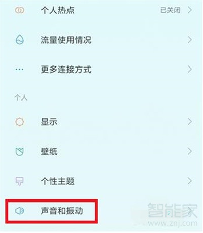 2、进入到设置功能界面后下拉界面,在个人选项的下方找到【声音和振动选项】选项并点击