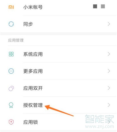 2、进入设置之后,在设置界面找到【授权管理】选项,点击打开。