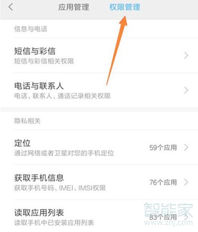 4、在顶部切换到【权限管理】一栏,然后点击进入自己需要设置的权限即可