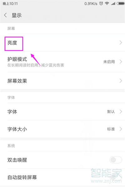 第三步:在显示界面,我们选择【亮度】选项,点击打开。