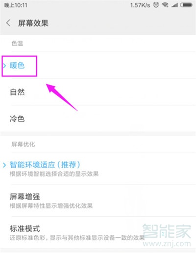 第四步:进去之后,我们可以看到暖色、自然、冷色三种设置选项,我们选择暖色。