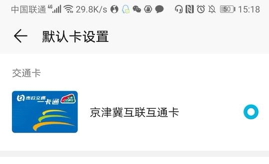 9、选择刚才我们添加的京津冀互联互通卡,当当当当~~大功告成,现在就可以优雅的熄屏刷手机搭公交了。