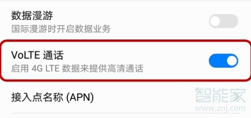 3、选择打开【VoLTE通话】,具体设置看具体机型。然后我们在户外的时候就可以一边开数据上网,一边打电话了。