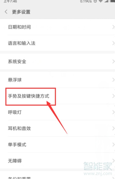 三、然后找到”手势及按键快捷方式“一项并点击进入。